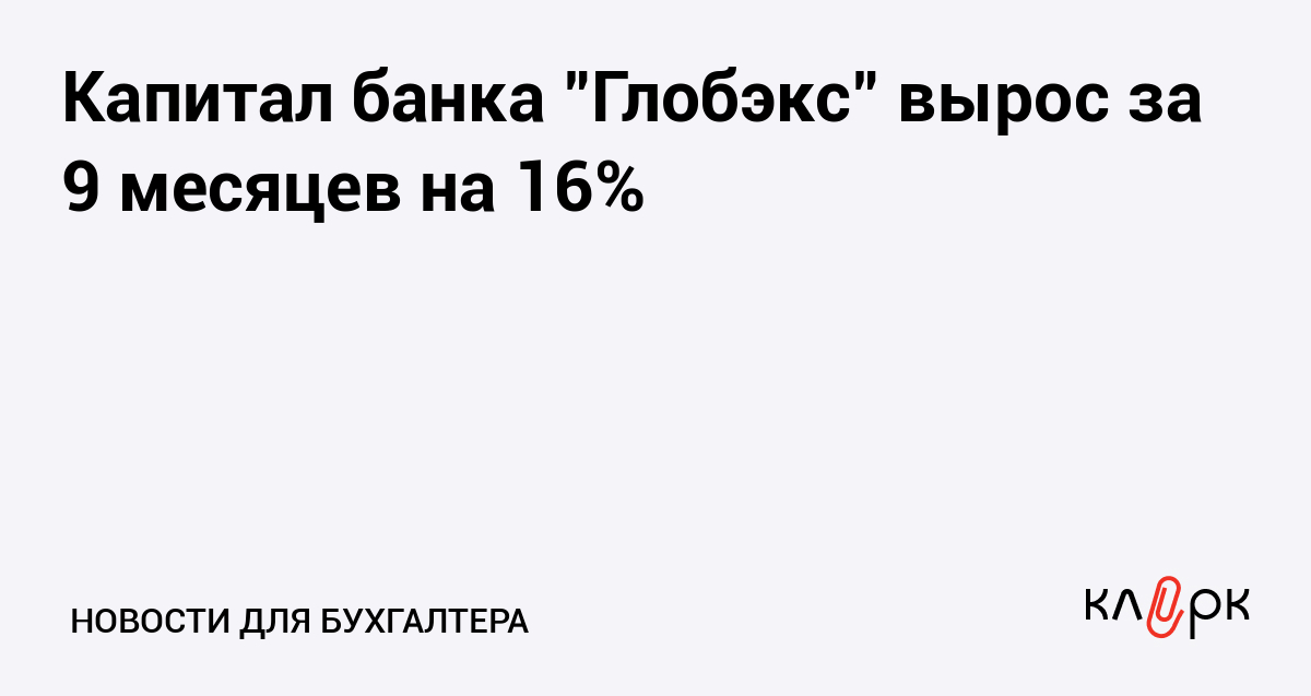 Капитал банка "Глобэкс" вырос за 9 месяцев на 16%