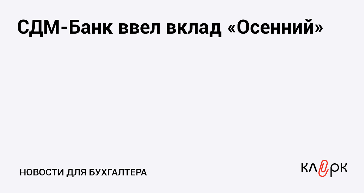 СДМ-Банк ввел новый вклад «Осенний». Средства принимаются с 1 октября 2008 года по 31 октября 2008 года сроком на 181 день.