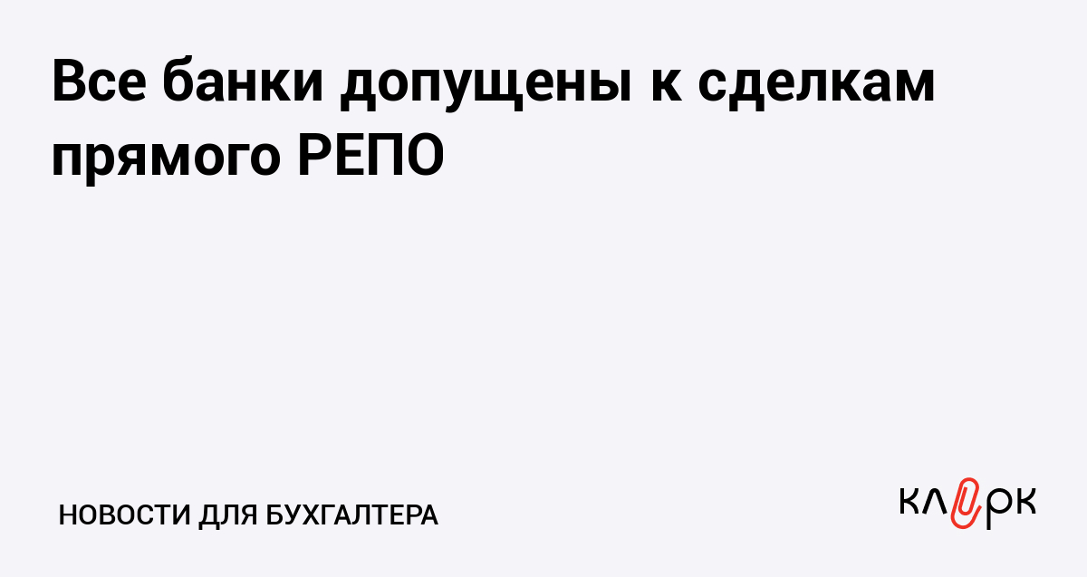 ЦБ РФ допустил все банки к сделкам прямого РЕПО.