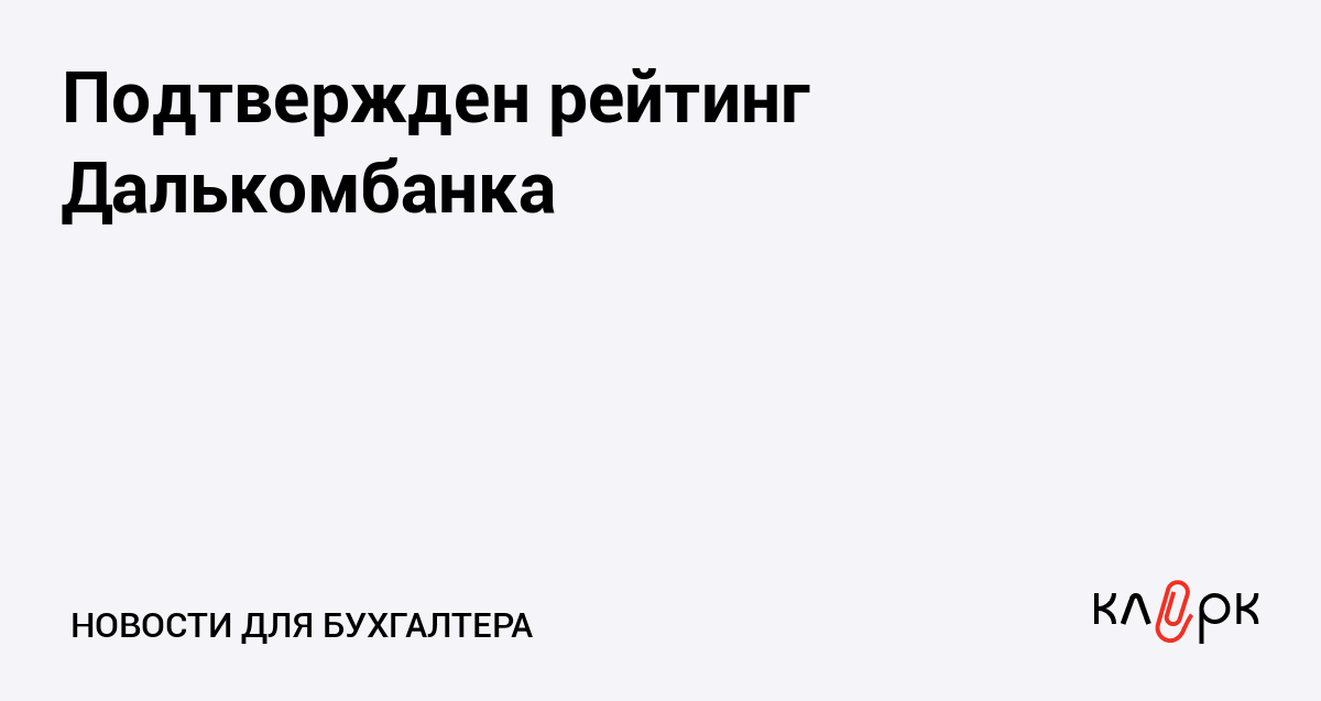 9 октября Fitch Ratings подтвердило рейтинги Далькомбанка: долгосрочный рейтинг дефолта эмитента ("РДЭ") на уровне "B+", краткосрочный РДЭ "B", индивидуальный рейтинг "E", рейтинг поддержки "4", национальный долгосрочный рейтинг "A-(A минус)(rus)". Прогноз по долгосрочному РДЭ и национальному долгосрочному рейтингу – "стабильный".