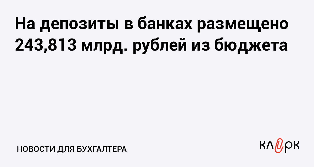 На депозиты в банках размещено 243,813 млрд. рублей из бюджета