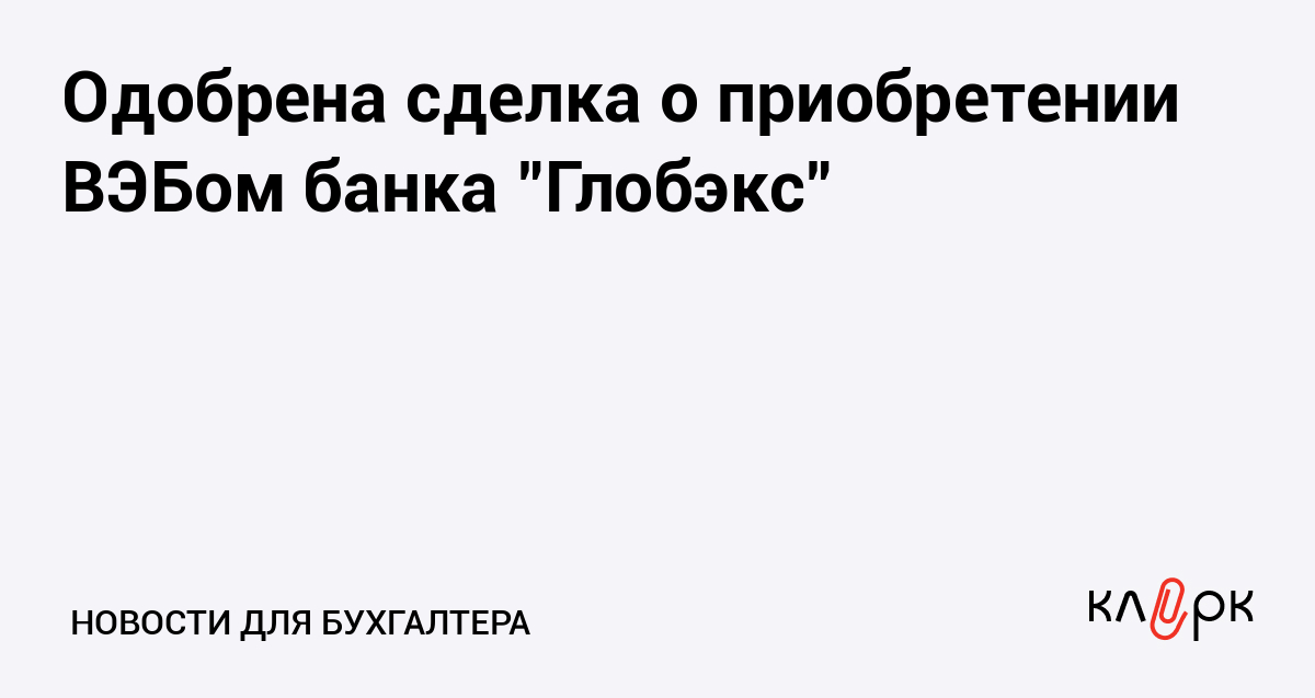 Наблюдательный совет Внешэкономбанка одобрил сделку по приобретению 99% акций ЗАО КБ "Глобэкс".