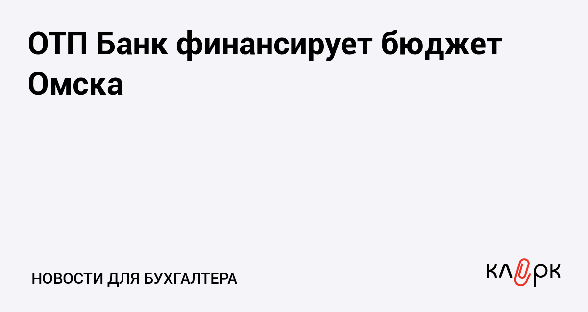 ОТП Банк предоставит бюджету города Омска кредит в размере 200 млн. рублей. Кредит будет предоставлен сроком на 1 год.