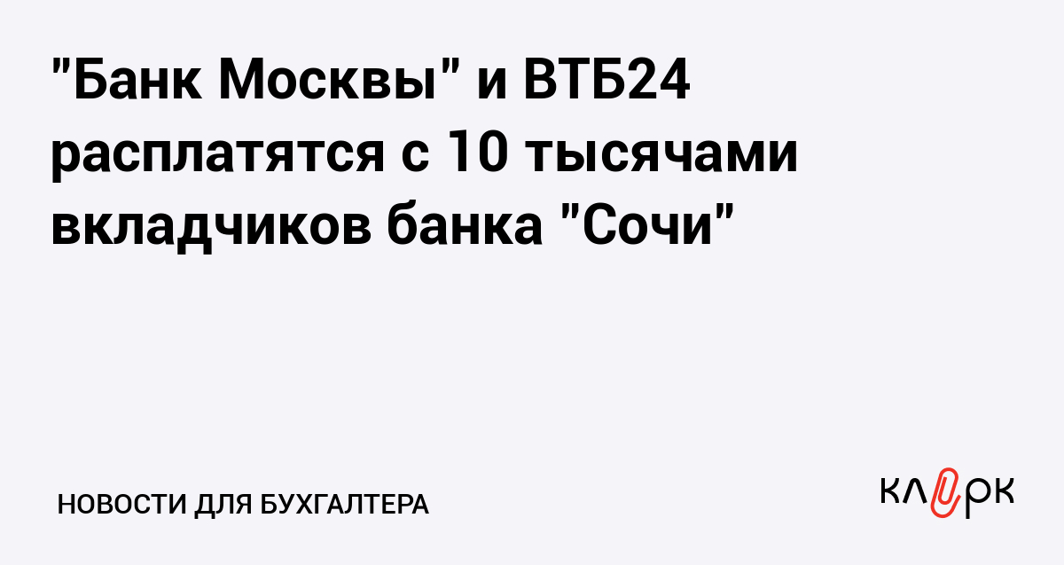 "Банк Москвы" и ВТБ24 расплатятся с 10 тысячами вкладчиков банка "Сочи"