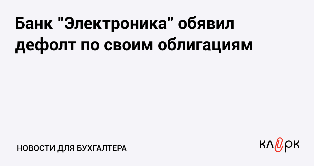 Банк "Электроника" обявил дефолт по своим облигациям