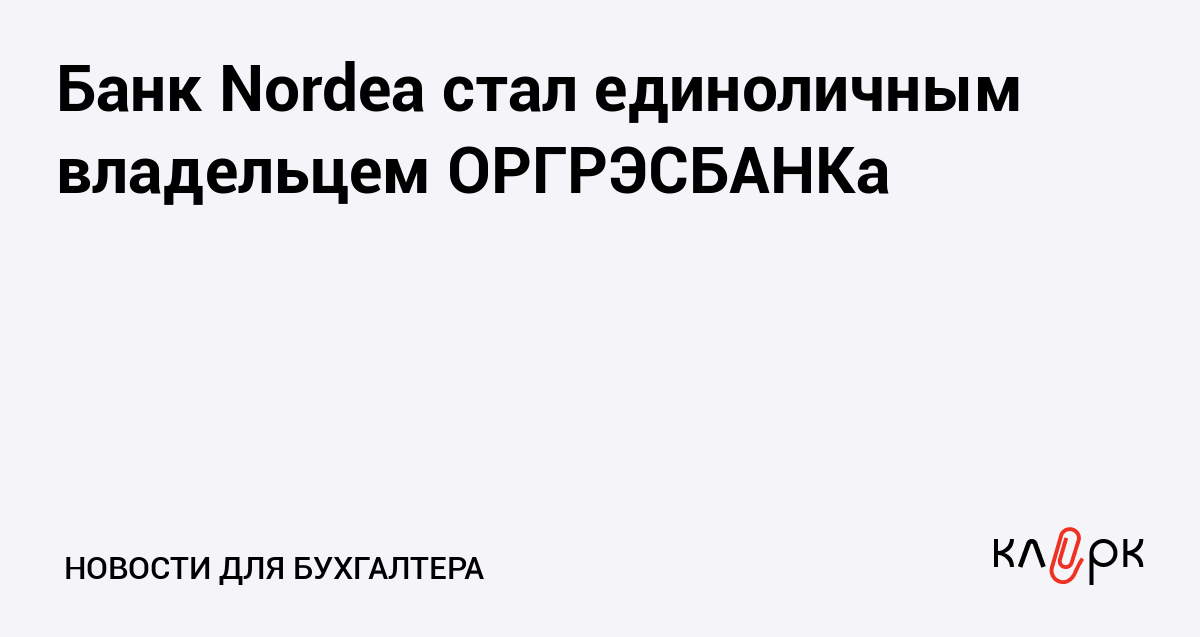 Банк Nordea стал единоличным владельцем ОРГРЭСБАНКа