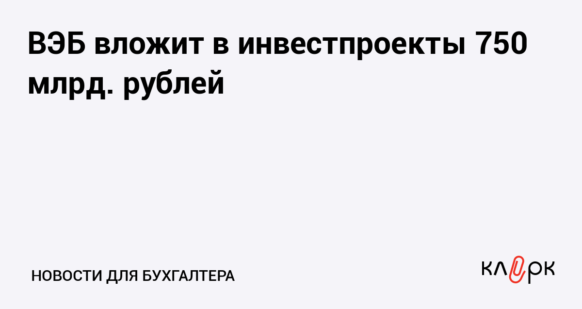 ВЭБ вложит в инвестпроекты 750 млрд. рублей