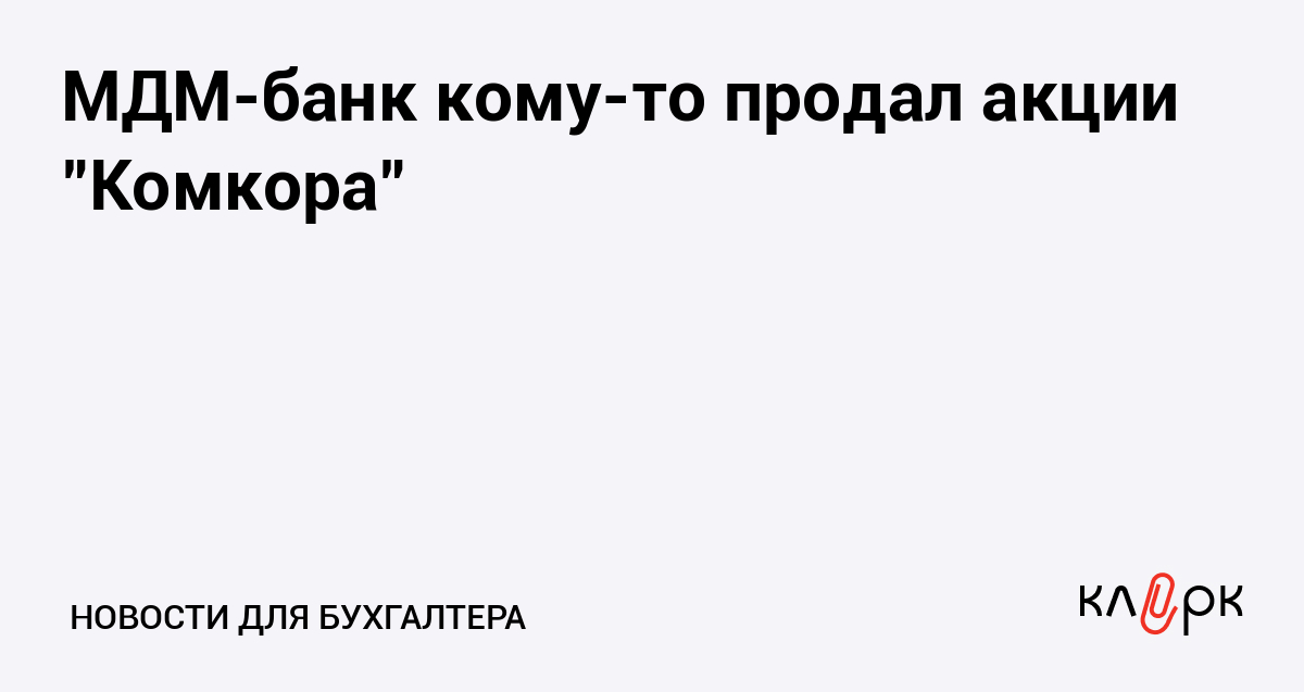 МДМ-банк сократил долю в Московской телекоммуникационной корпорации («Комкор», бренд «Акадо телеком») с 24,87% акций до нуля, говорится в официальном сообщении банка. Как пишут "Ведомости" со ссылкой на пресс-службу банка, "речь идет о второй части стандартной сделки репо с одним из акционеров “Комкора”. Подробности не сообщаются.