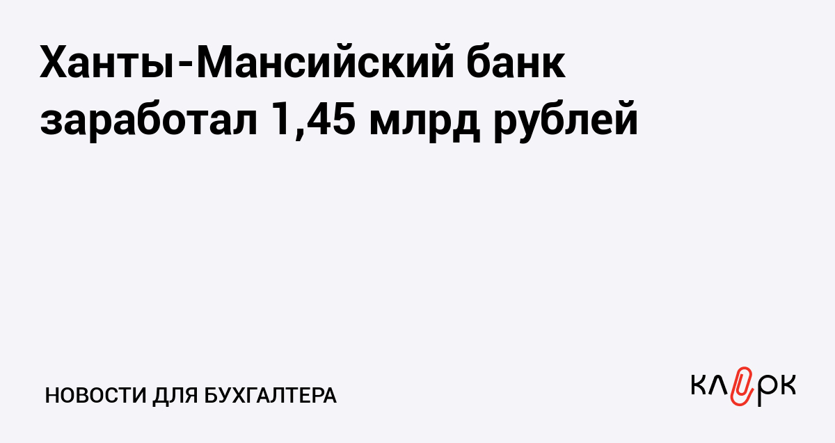 Ханты-Мансийский банк заработал 1,45 млрд рублей