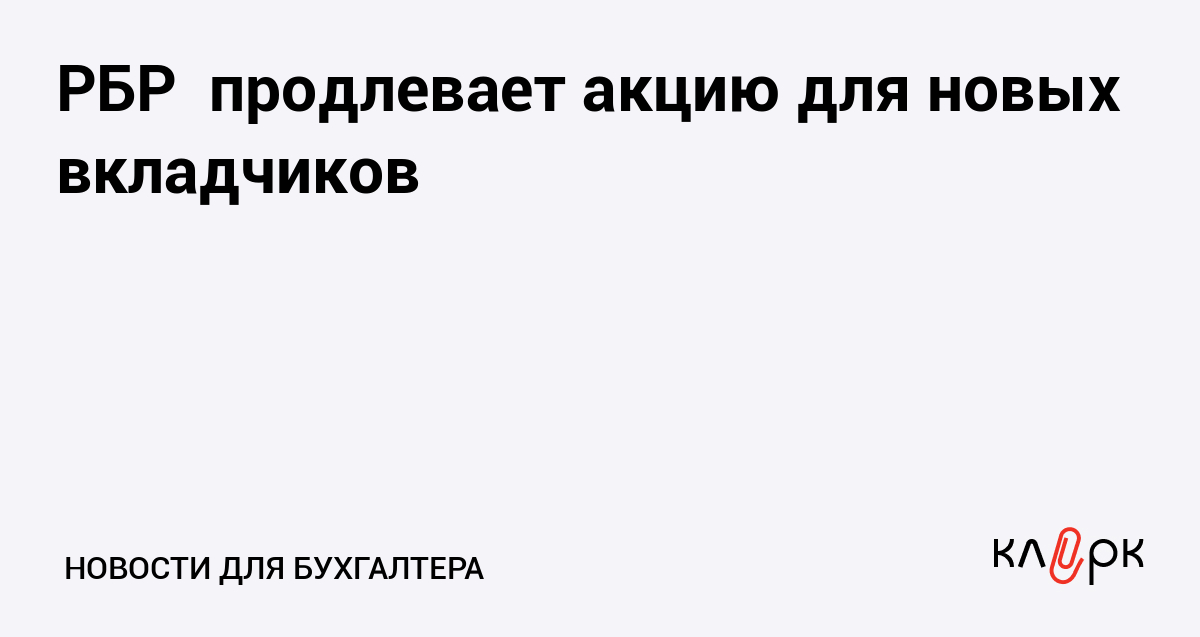 С 1 февраля по 31 марта 2009 года Русский Банк Развития продлевает акцию для новых вкладчиков. В рамках акции РБР дарит всем клиентам, открывшим вклад в банке, фирменные подарки. Данная акция действует во всех филиалах РБР.