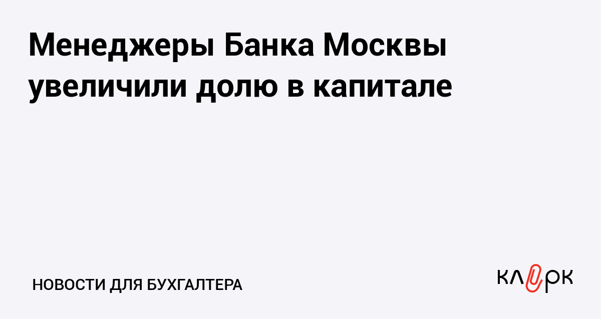 Президент Банка Москвы Андрей Бородин, и заместитель председателя Совета директоров банка Лев Алалуев увеличили долю в капитале до 23% через компании, которым принадлежит данный пакет акций, говорится в официальном сообщении кредитной организации.