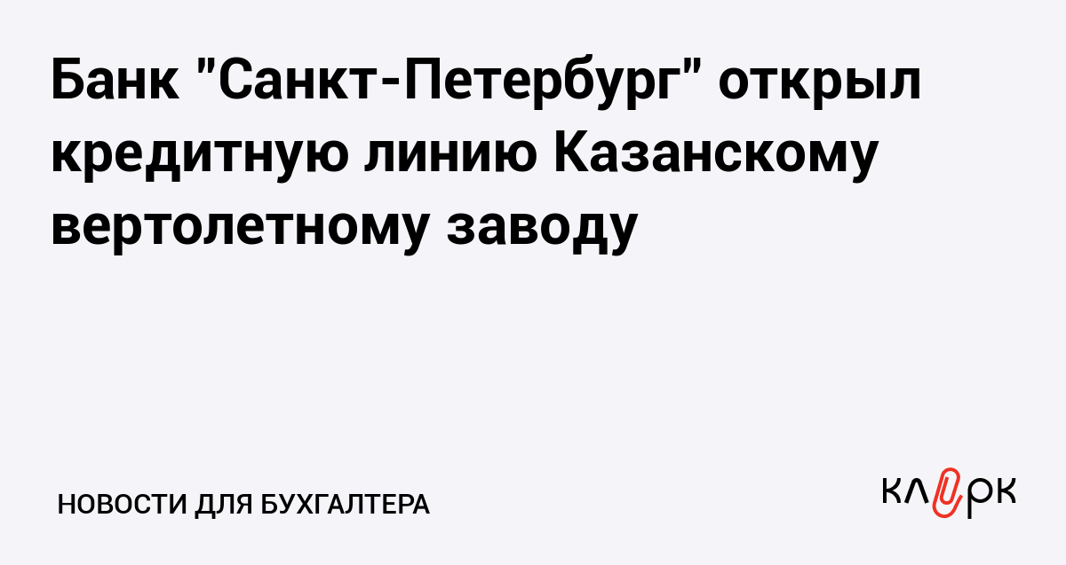 Банк «Санкт-Петербург» открыл ОАО «Казанский вертолетный завод» кредитную линию в объеме 100 млн долларов США сроком на 1 год,