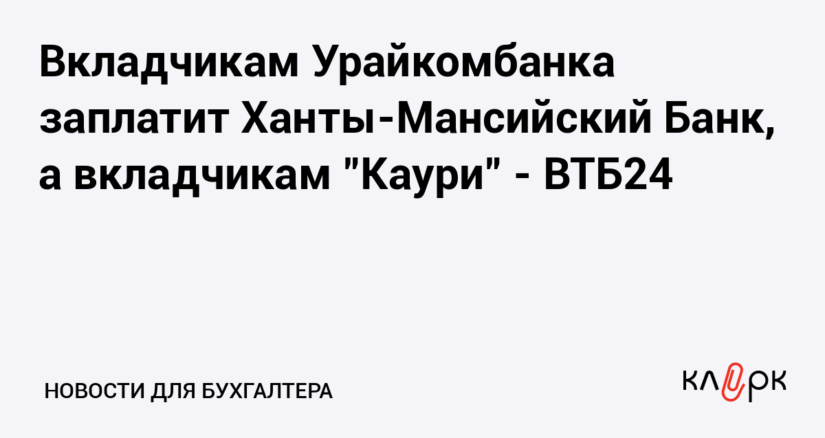 Вкладчикам Урайкомбанка заплатит Ханты-Мансийский Банк, а вкладчикам "Каури" - ВТБ24