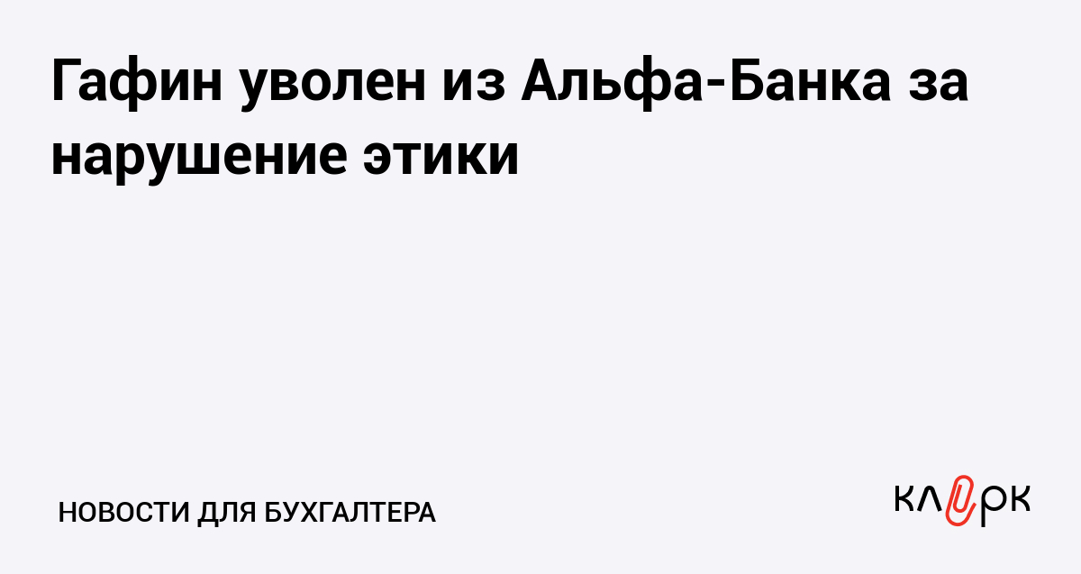 Сегодня также поступила информация о том, что Гафин уволен из Альфа-Банка с формулировкой "за нарушение корпоративной этики".