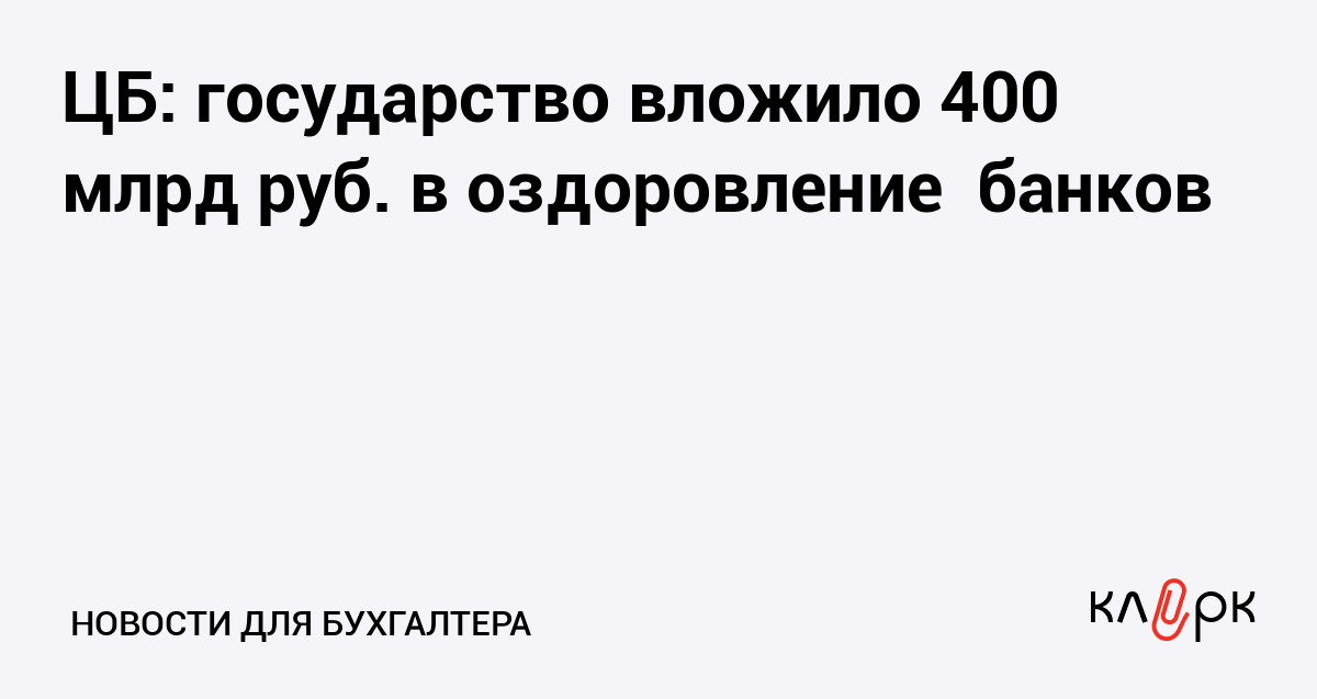 ЦБ: государство вложило 400 млрд руб. в оздоровление банков