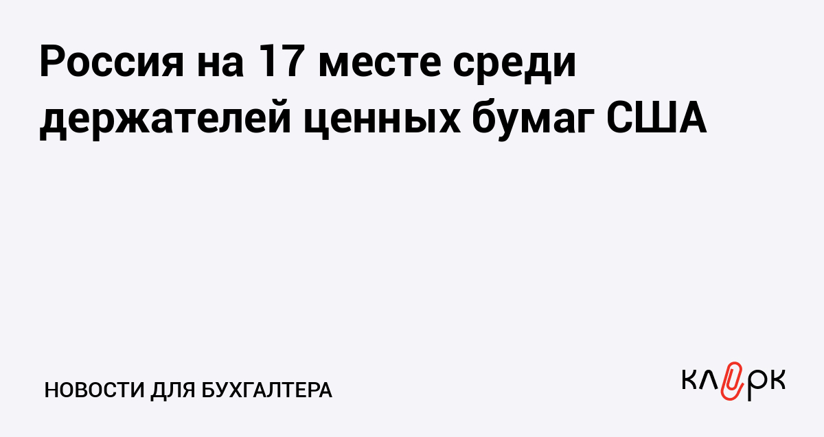 Россия по состоянию на конец июня 2008 г была держателем американских ценных бумаг на общую сумму 160 млрд долл. По этому показателю она занимала в мире 17-е место, говорится в отчете Минфина США.