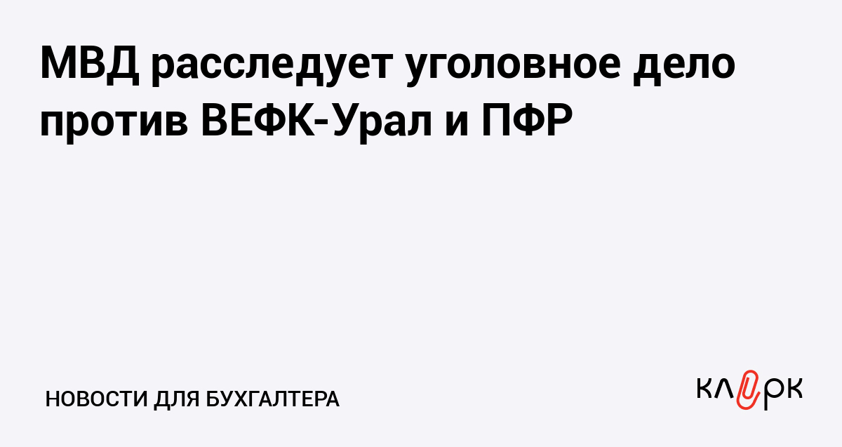МВД расследует уголовное дело против ВЕФК-Урал и ПФР