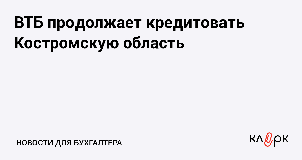 Банк ВТБ и Костромская область заключили государственный контракт на предоставление кредитных ресурсов для нужд бюджета региона на общую сумму 700 млн рублей. Полученные средства направлены на финансирование дефицита бюджета области.