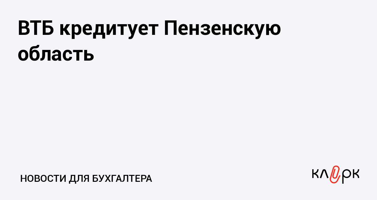 Банк ВТБ предоставил администрации Пензенской области кредит в размере 1 млрд рублей