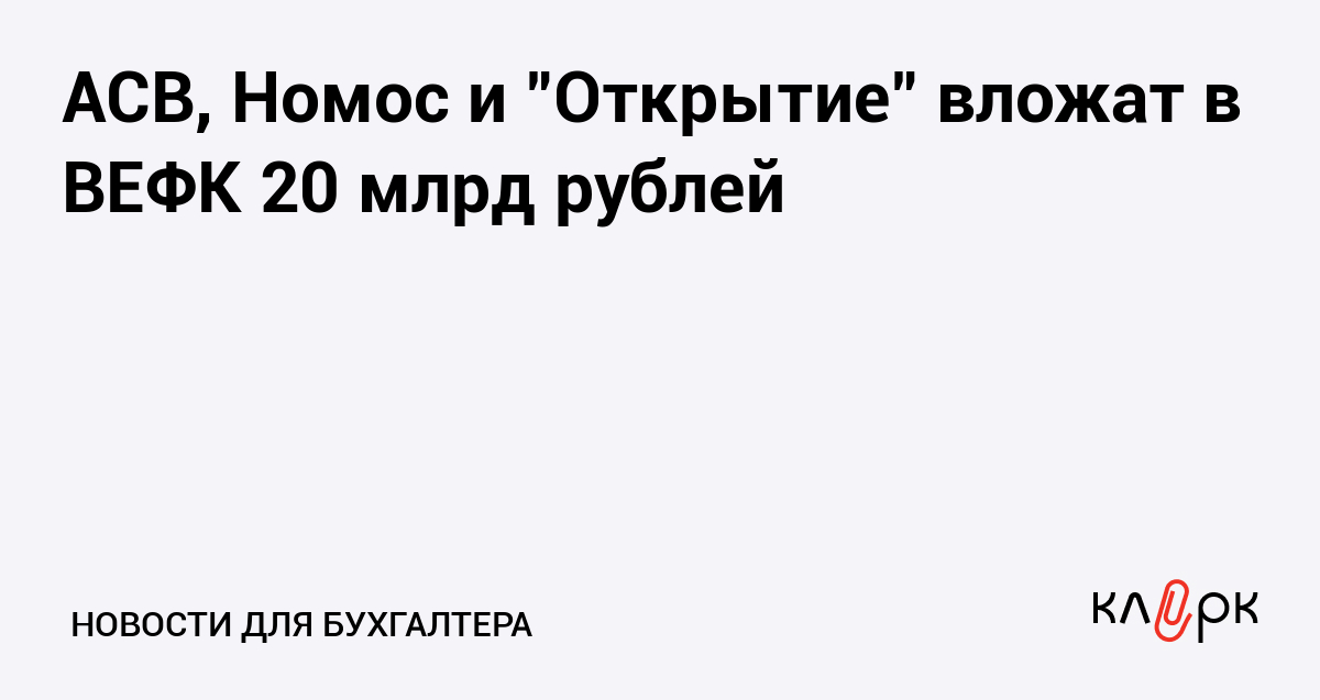 АСВ, Номос и "Открытие" вложат в ВЕФК 20 млрд рублей