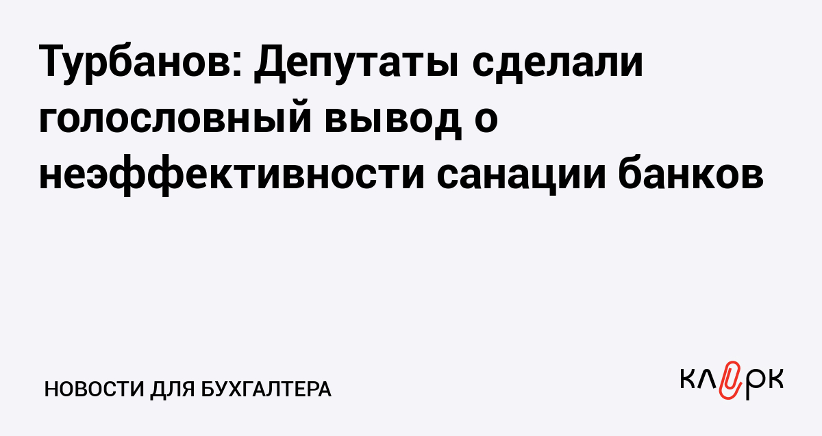 Турбанов: Депутаты сделали голословный вывод о неэффективности санации банков