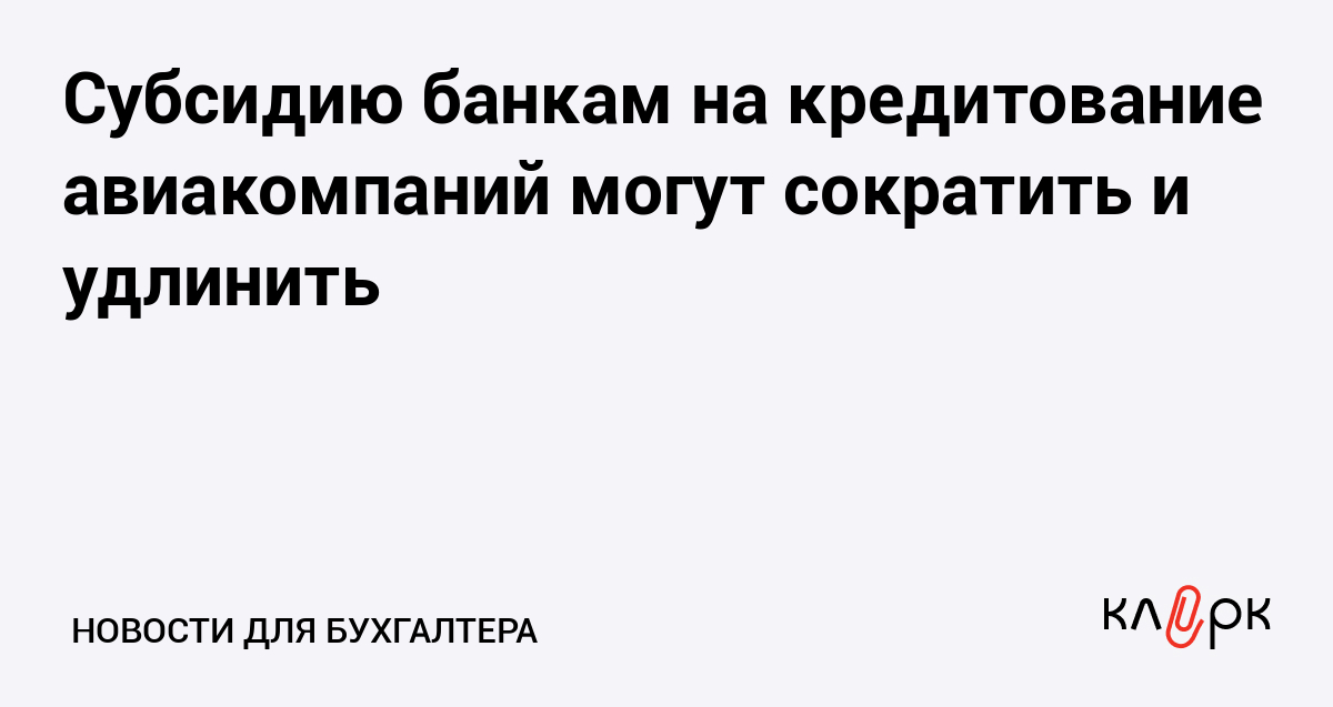 Правительство планирует сократить размер субсидий банкам на возмещение затрат и недополученных доходов по сделкам кредитования авиакомпаний. Как говорится в проекте постановления правительства, опубликованном на сайте Минфина, предлагается уменьшить размер выделяемых средств с 30 до 21 млрд рублей, а срок действия программы, напротив, увеличить до 2010 года.
