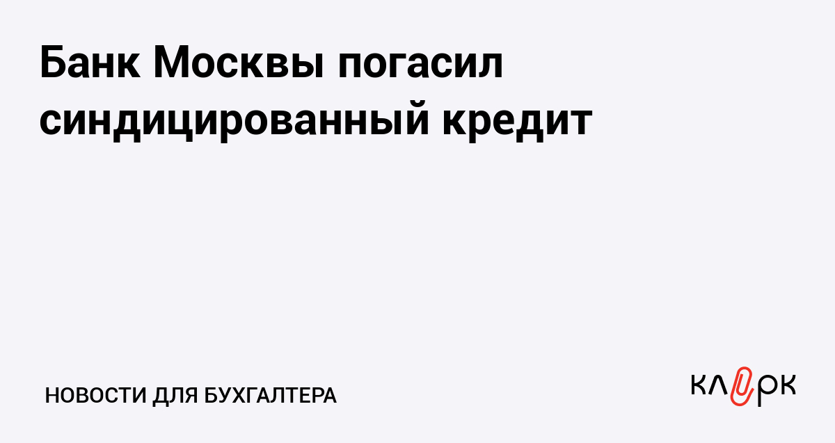 Банк Москвы 8 мая выполнил обязательства по погашению синдицированного кредита на сумму 400 млн долларов США