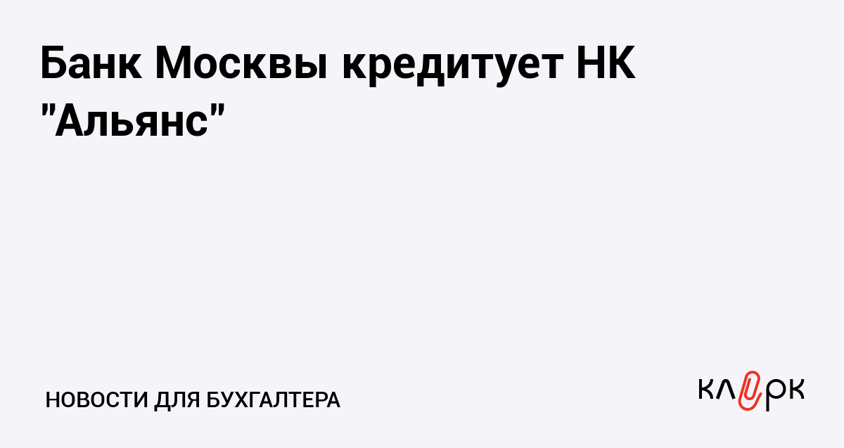 Банк Москвы выдал ОАО «Нефтяная компания «Альянс» кредит на сумму 33,5 млн долларов США. Срок кредитования – 1 год.