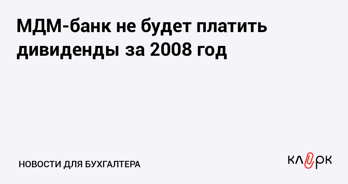Общее годовое собрание акционеров МДМ-Банка, состоявшееся 29 мая, приняло решение оставить в распоряжении банка чистую прибыль за 2008 год.