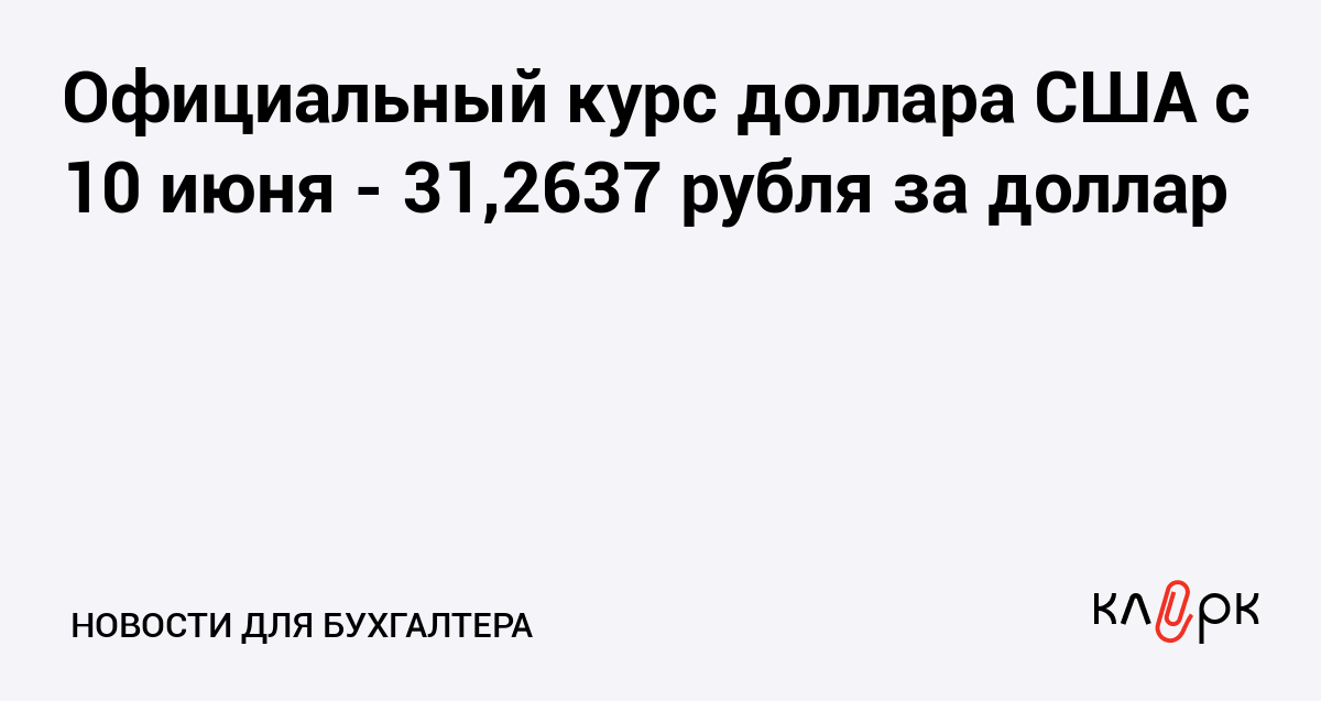Официальный курс доллара США с 10 июня - 31,2637 рубля за доллар