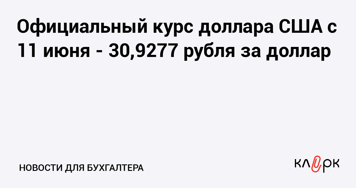 Официальный курс доллара США с 11 июня - 30,9277 рубля за доллар