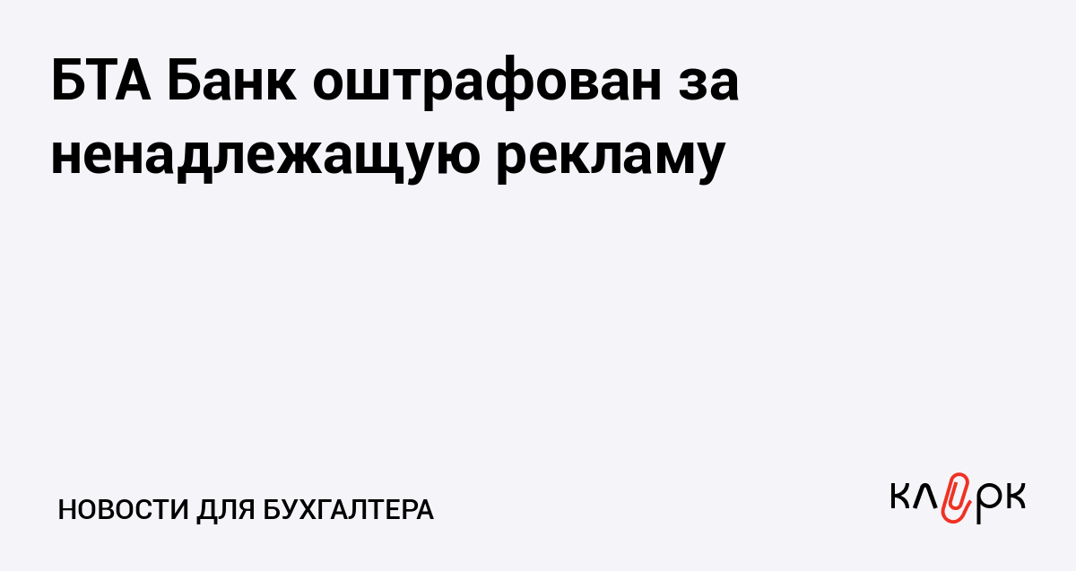За ненадлежащую рекламу БТА Банк заплатит штраф в размере 100 тыс. рублей.