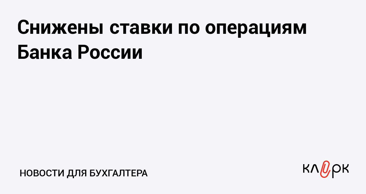Снижены ставки по операциям Банка России