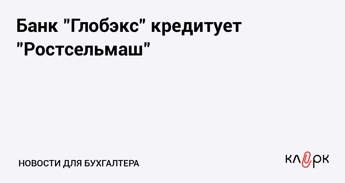 Банк "Глобэкс" выдал компании "Ростсельмаш" кредит объемом 300 млн. рублей.