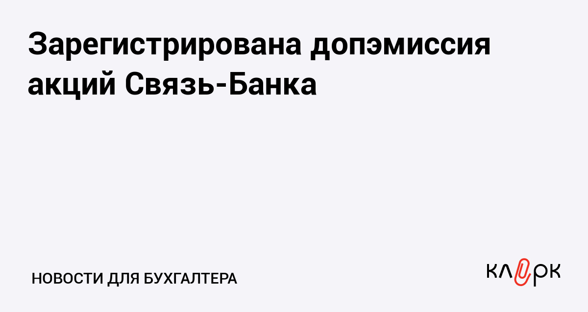 Банк России зарегистрировал дополнительную эмиссию акций Связь-Банка на общую сумму 20 млрд. рублей.