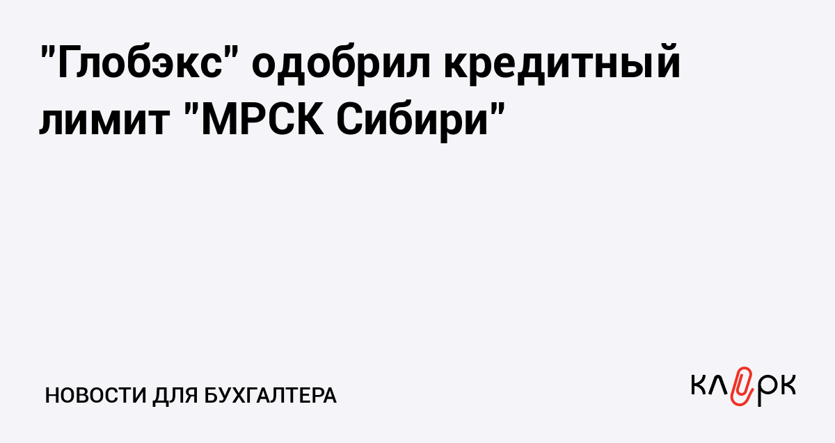 "Глобэкс" одобрил кредитный лимит "МРСК Сибири"