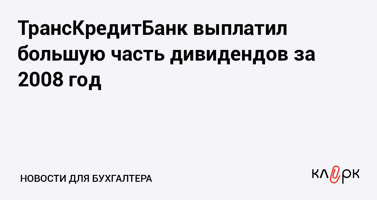ТрансКредитБанк выплатил большую часть дивидендов за 2008 год