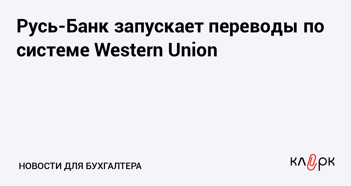 С 16 июля 2009 года в Русь-Банке стартовал пилотный проект по осуществлению денежных переводов по системе Western Union. Проект будет реализован на базе Московского, Уфимского, Челябинского и Пермского филиалов, сообщает пресс-служба банка.