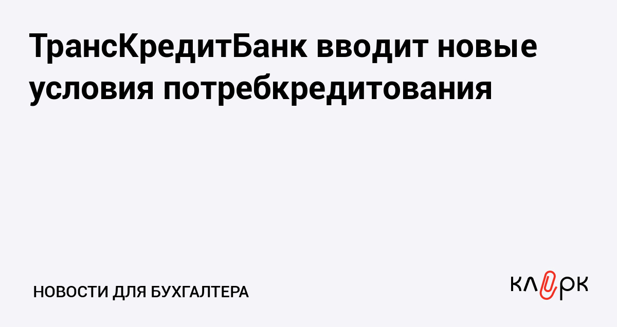 С 20 июля 2009 года ТрансКредитБанк вносит изменения в программу потребительского кредитования частных лиц без обеспечения. В рамках обновленной программы банк будет предоставлять кредиты сотрудникам организаций - корпоративных клиентов, а также предприятий бюджетной сферы и реального сектора экономики, имеющих стабильное финансовое положение, сообщает пресс-служба банка.
