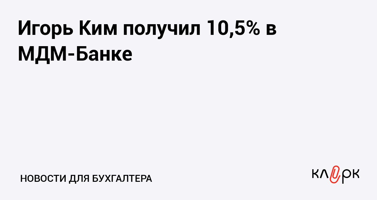 В объединенном МДМ-Банке доля председателя правления банка Игоря Кима составила 10,5%. Доля заместителя председателя совета директоров Сергея Попова составила около 54%.