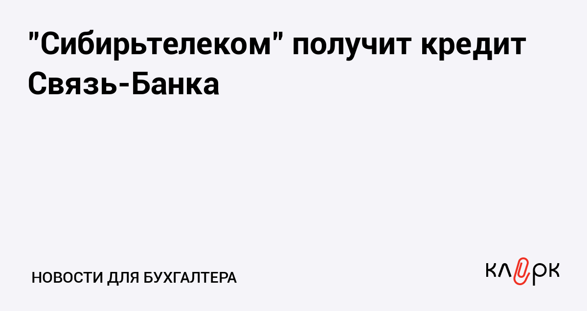 "Сибирьтелеком" получит кредит Связь-Банка