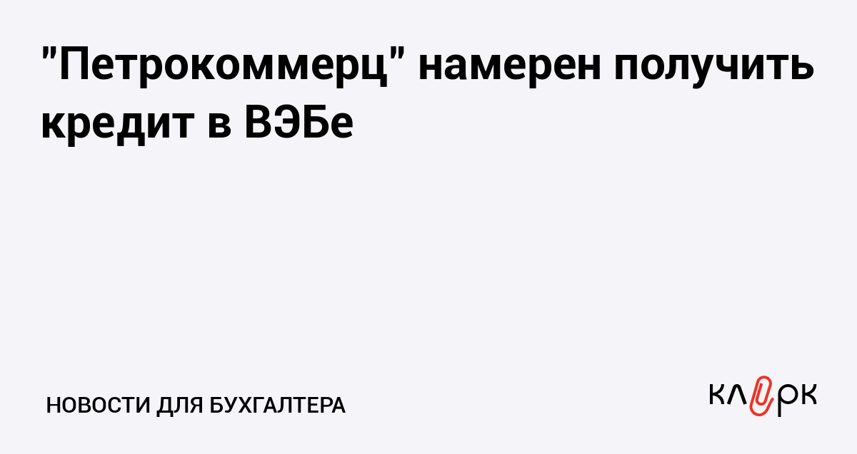 "Петрокоммерц" намерен получить кредит в ВЭБе