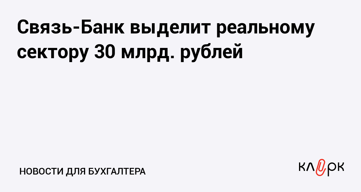 Связь-Банк выделит реальному сектору 30 млрд. рублей