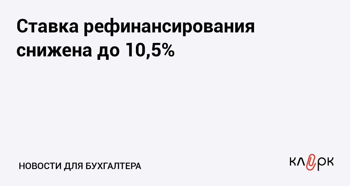 Совет директоров ЦБ принял решение о снижении с 15 сентября 2009 года ставки рефинансирования Банка России на 0,25 процентного пункта до 10,5% годовых. Также будут снижены процентные ставок по операциям ЦБ.