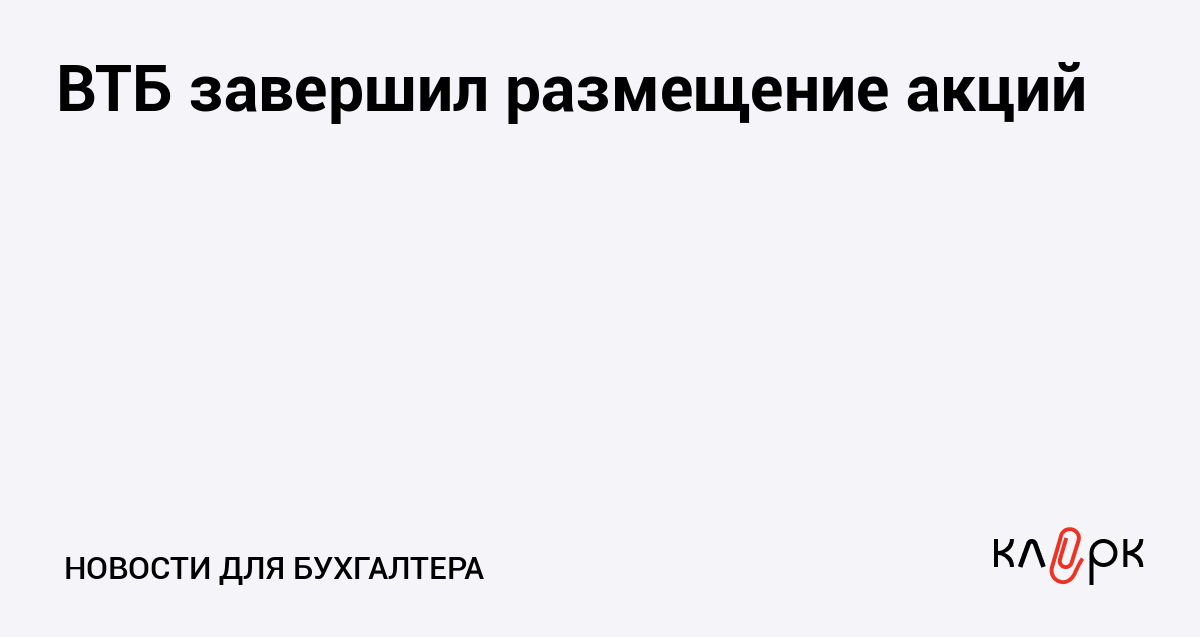 Банк ВТБ сообщает о завершении объявленного ранее размещения дополнительных обыкновенных именных акций номинальной стоимостью 0,01 рубля каждая.