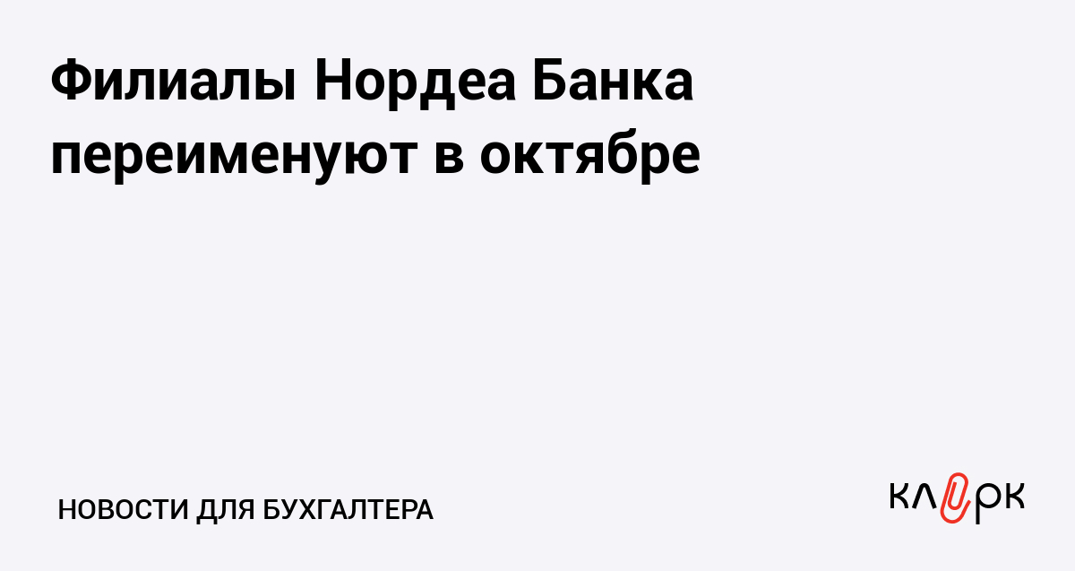 Филиалы Нордеа Банка переименуют в октябре
