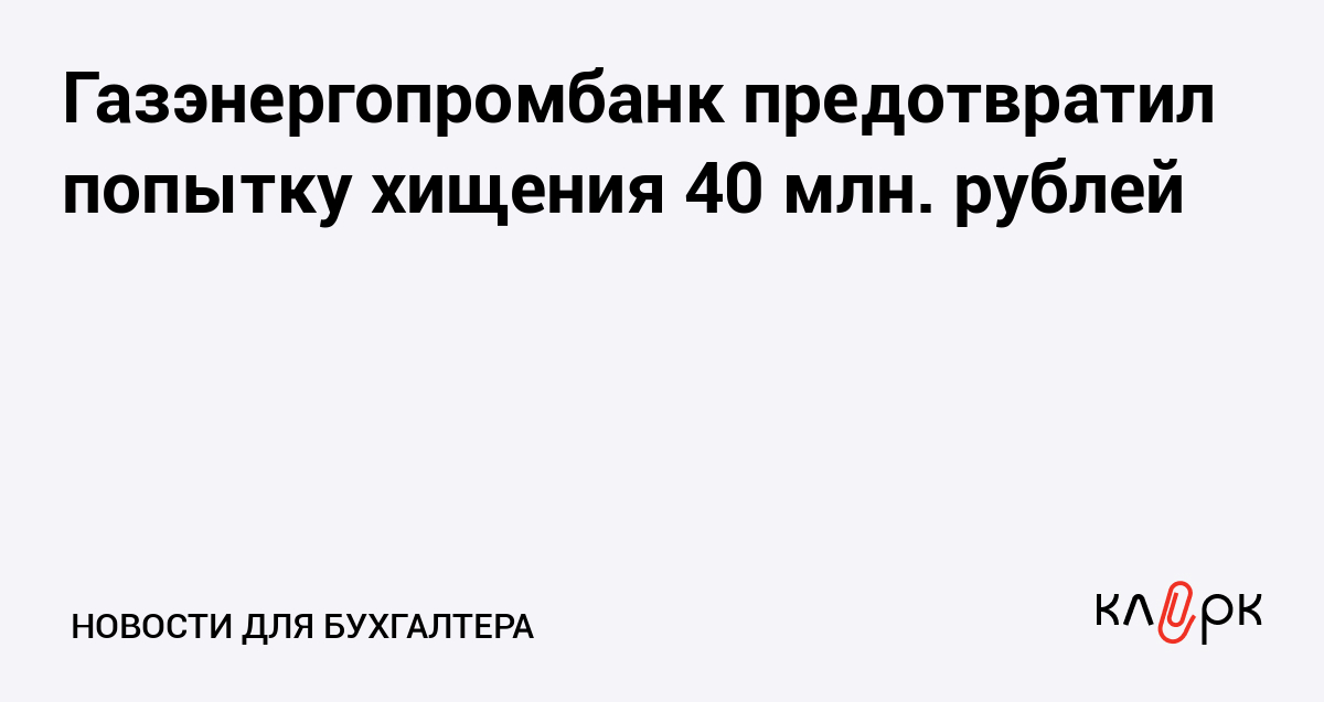Газэнергопромбанк предотвратил попытку хищения 40 млн. рублей
