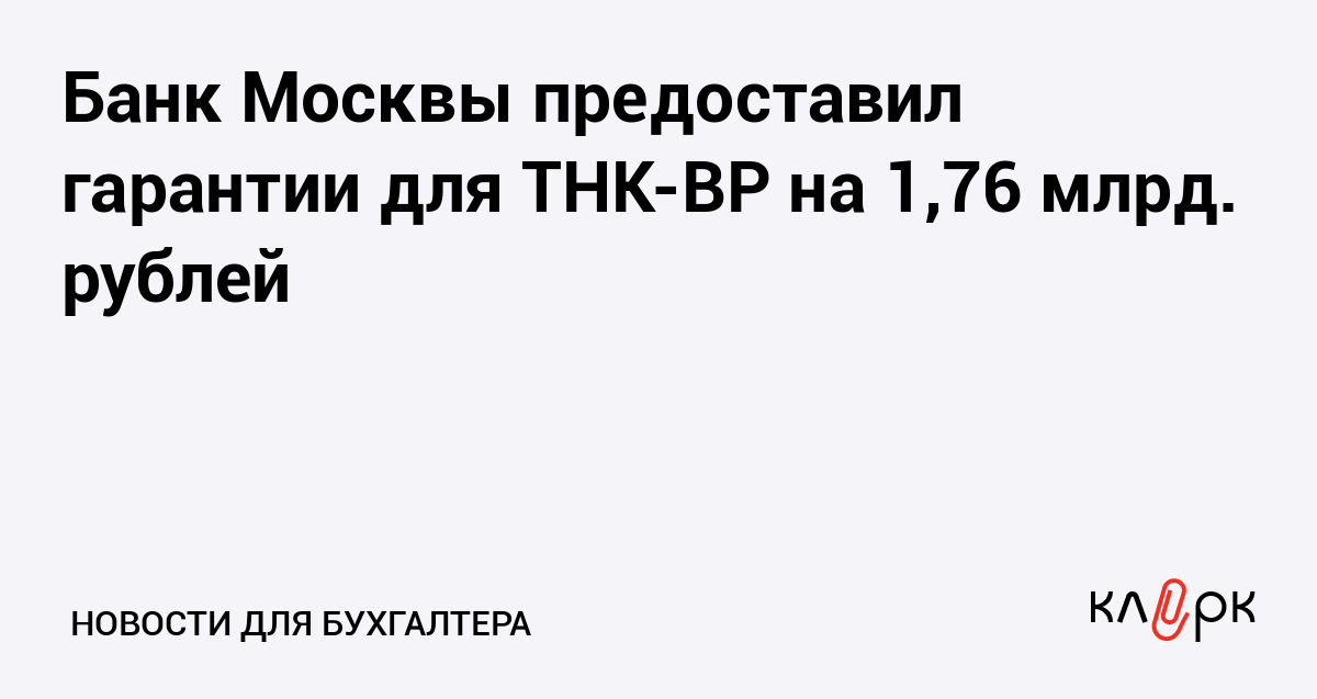 Банк Москвы предоставил гарантии для ТНК-ВР на 1,76 млрд. рублей