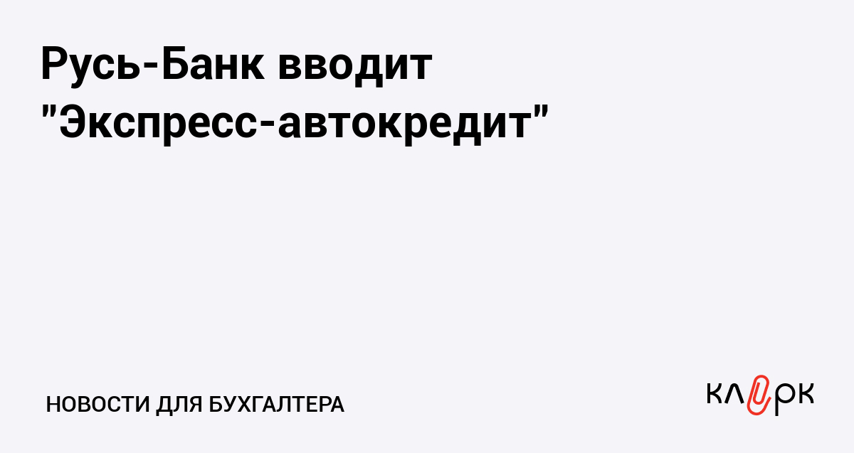 С 10 декабря 2009 года Русь-Банк запускает новую программу кредитования на покупку автомобилей для частных клиентов. Программа "Экспресс-автокредит" рассчитана на приобретение новых и подержанных легковых автомобилей отечественных и иностранных марок.