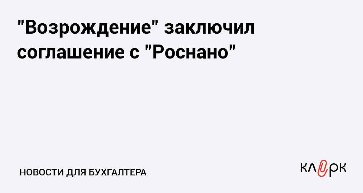 Как сообщает пресс-служба банка, соглашение с "Роснано" позволит нарастить банку "Возрождение" портфель срочных ресурсов, привлекаемых от крупных государственных компаний.